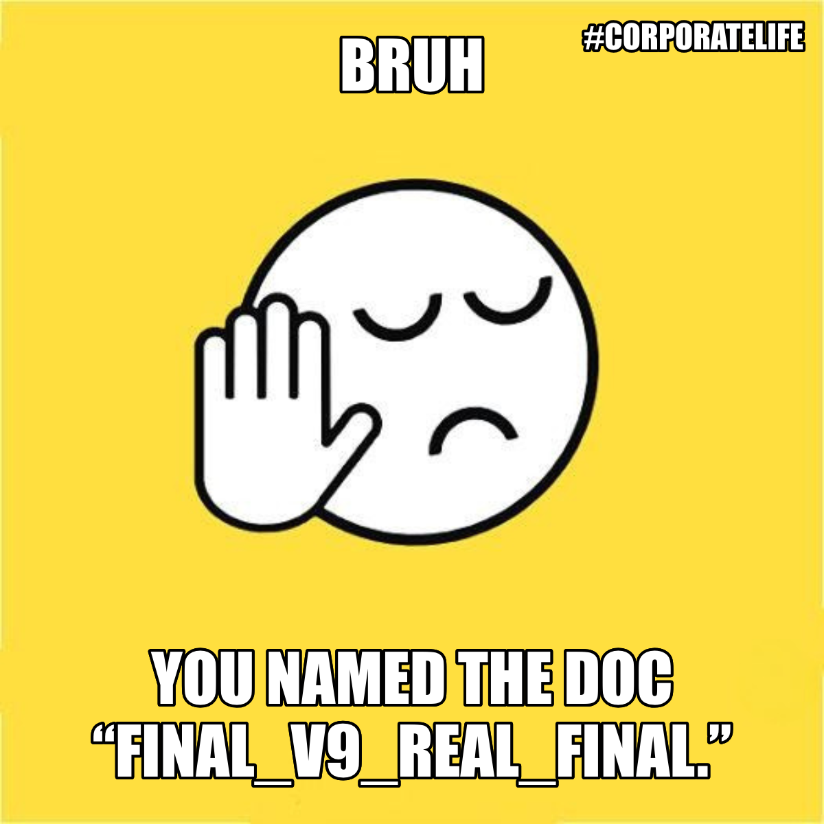 When you realize your document's name is more complicated than your actual work. #corporatelife #bruh